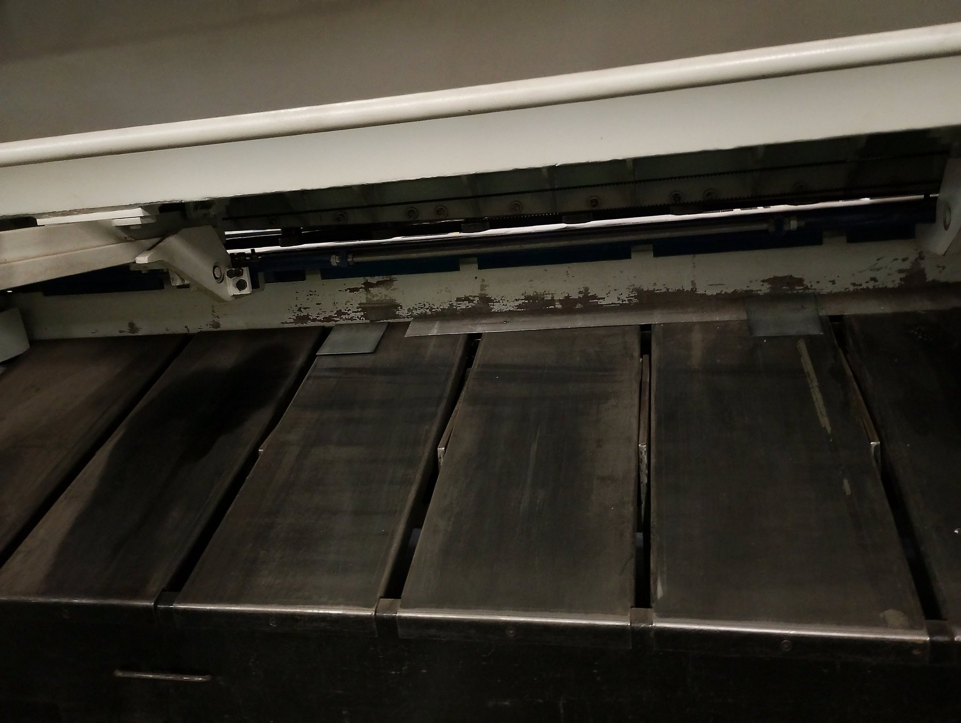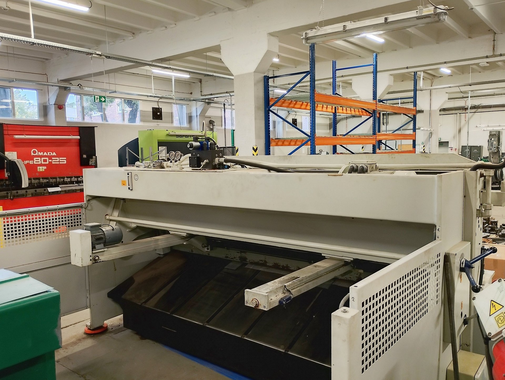 Hydraulické tabulové nůžky MVD B06-3100 byly vyrobeny v roce 2014 v Turecku společností MVD Inan Machine Tool Industry Co. Stroj se používá k přesnému stříhání plechů o maximální tloušťce 6 mm. Obrábění se provádí pomocí vysoce kvalitních řezných nožů nastavených pod úhlem 1,5°. Polohování materiálu usnadňuje pracovní stůl s integrovanými kuličkami, na kterém obrobek prochází přímo pod řeznou linkou. To vše doplňuje robustní konstrukce se spolehlivým hlavním motorem o výkonu 10 kW. Tabulové nůžky MVD B 06-3100 váží přibližně 6000 kg.