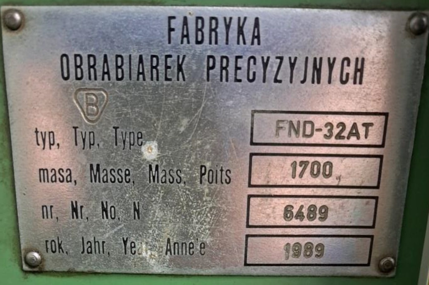 AVIA FND 32AT universal milling machine was built in 1989 in Poland by Fabryka Obrabiarek Precyzyjnych AVIA S.A. The machine, designed for precision machining of workpieces with a maximum weight of 300 kg, is an excellent choice for both unit and small batch production. Ball screws in all axes, combined with precisely machined guideways, guarantee high repeatability of the produced parts even during the most intensive challenges. The machine also features a digital readout and a lamp that illuminates the workspace. The FND 32 AT conventional milling machine weighs 1700 kg.