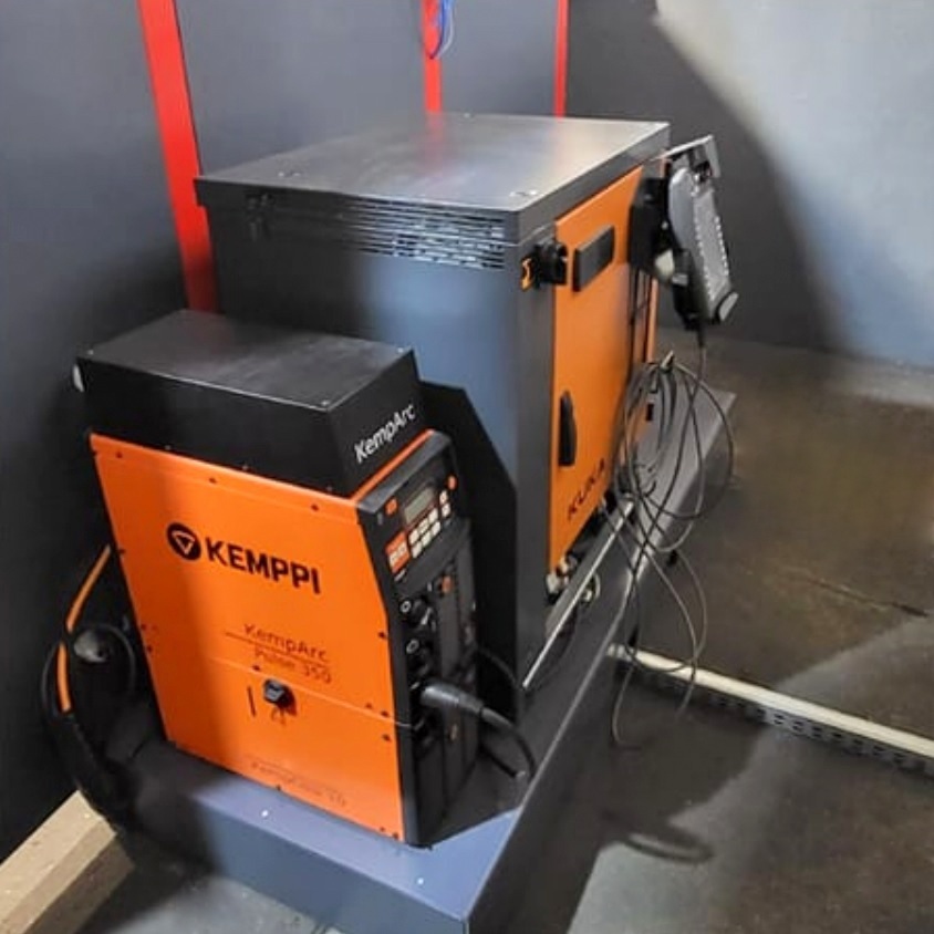 During automated welding, dynamic and accurate feeding of the welding wire is very important. To achieve this, a reliable KEMPPI feeder is mounted directly on the machine body. The torch, in turn, is continuously cleaned by the ABICOR BINZEL cleaning station, which injects a special anti-adhesion substance into the torch. The cleaning and humidification process is performed fully automatically, at set intervals.
