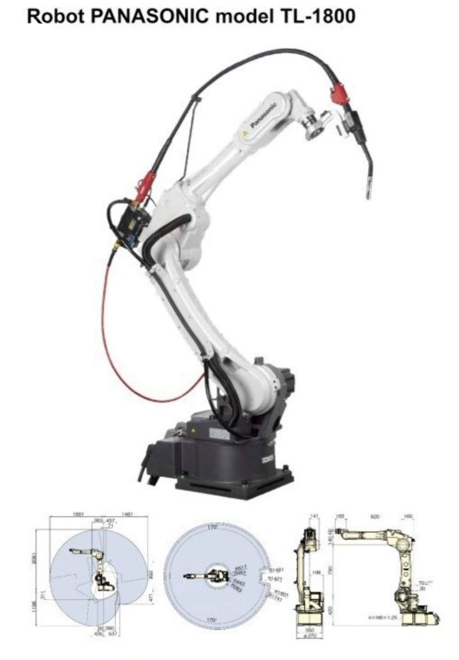 PANASONIC TL-1800 GIII welding robot was built in 2021 in Japan by Panasonic Smart Factory Solutions Co., Ltd. The machine, distinguished by its high reliability and ease of operation, is an excellent choice for precision welding of workpieces using the TIG method. Its slim design, combined with the large range of arm movement, allows free operation in all positions, even in hard-to-reach places. The TL 1800 robot arm is offered together with equipment, which includes a controller, a portable control unit and a TIG welder. The total weight of the machine is 215 kg.