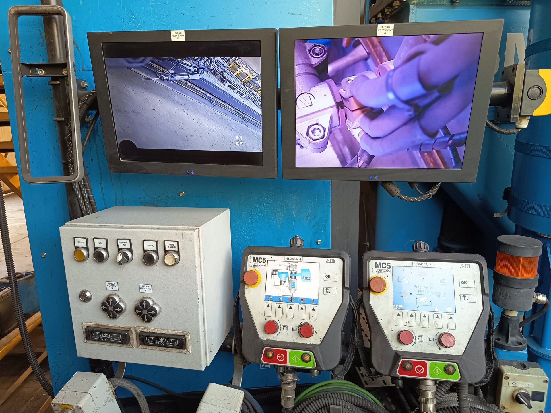 Columna de soldadura AIR LIQUIDE CB MATIC SM 42X43 fue fabricada en 2016 en Francia por Air Liquide Welding – Oerlikon (ahora Lincoln Electric). La máquina, diseñada para soldadura circunferencial y longitudinal de precisión, es la solución perfecta para empresas especializadas en la fabricación de, entre otros, estructuras de acero, tuberías, depósitos y torres de aerogeneradores. El proceso de soldadura se realiza de forma totalmente automática mediante un sistema de cabezales de soldadura, que permite soldar dos soldaduras simultáneamente en tubos con un diámetro máximo de 4000 mm y perfiles doble T dI con unas dimensiones máximas de 3000 x 800 mm. El uso de esta solución reduce significativamente el tiempo de producción, manteniendo al mismo tiempo una alta precisión y eficacia.