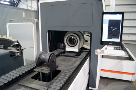 El Máquina de corte por láser de tubos BODOR T6E se produjo en 2018. El Máquina cortadora láser de tubos y perfiles BODOR T6E está equipado con un alimentador automático, una fuente de alimentación de 750 W y un control CNC eficaz con un sistema operativo estable. La máquina también tiene un sistema de doble refrigeración, sistema de lubricación y sistema de extracción de polvo. El corte con oxígeno y nitrógeno garantiza muy buenos resultados de corte. La máquina apenas se usó, solo funcionó 120 horas.