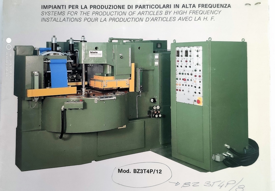 BIZETA BZ3T4P/8 hegesztőgép 1989-ben gyártották Olaszországban. A gépet úgy tervezték, hogy nagyon pontos és precíz hegesztést végezzen olyan anyagok, mint a PVC és a poliészter, azáltal, hogy az anyag felületét nagyfrekvenciás energiának teszi ki. Az elektromágneses mező formájában megjelenő elektromosság hőt termel, amely megpuhítja az anyagot és összeolvasztja annak rétegeit. A folyamat végén a forgóasztallal ellátott BZ3T4P/8 hegesztőgép lehűti az anyag felületét, miközben nagy, nyomás alatt tartja azt, ami nagyon erős hegesztési varrat kialakulását eredményezi. A gép teljes tömege 3400 kg.
