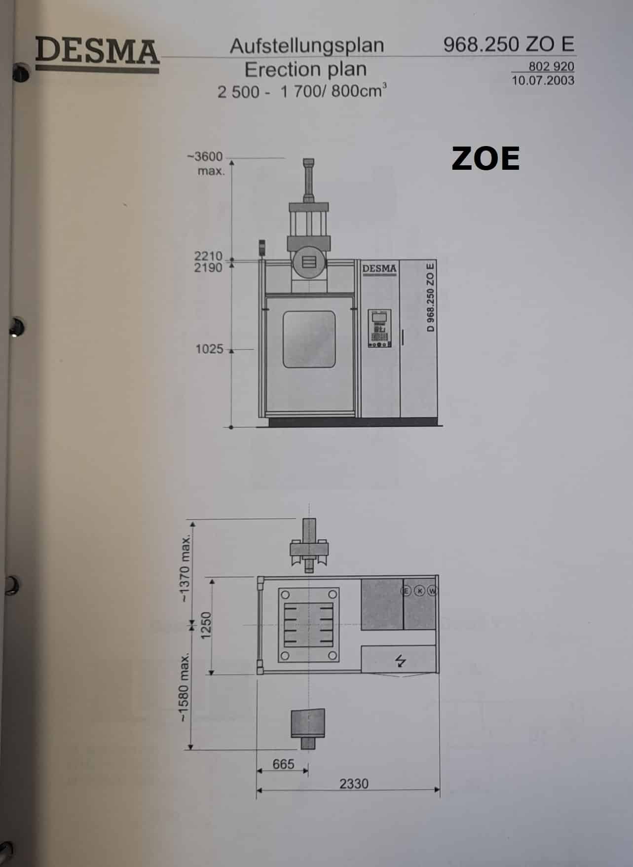 A DESMA 968.250 ZOE fröccsöntőgép műszaki adatai