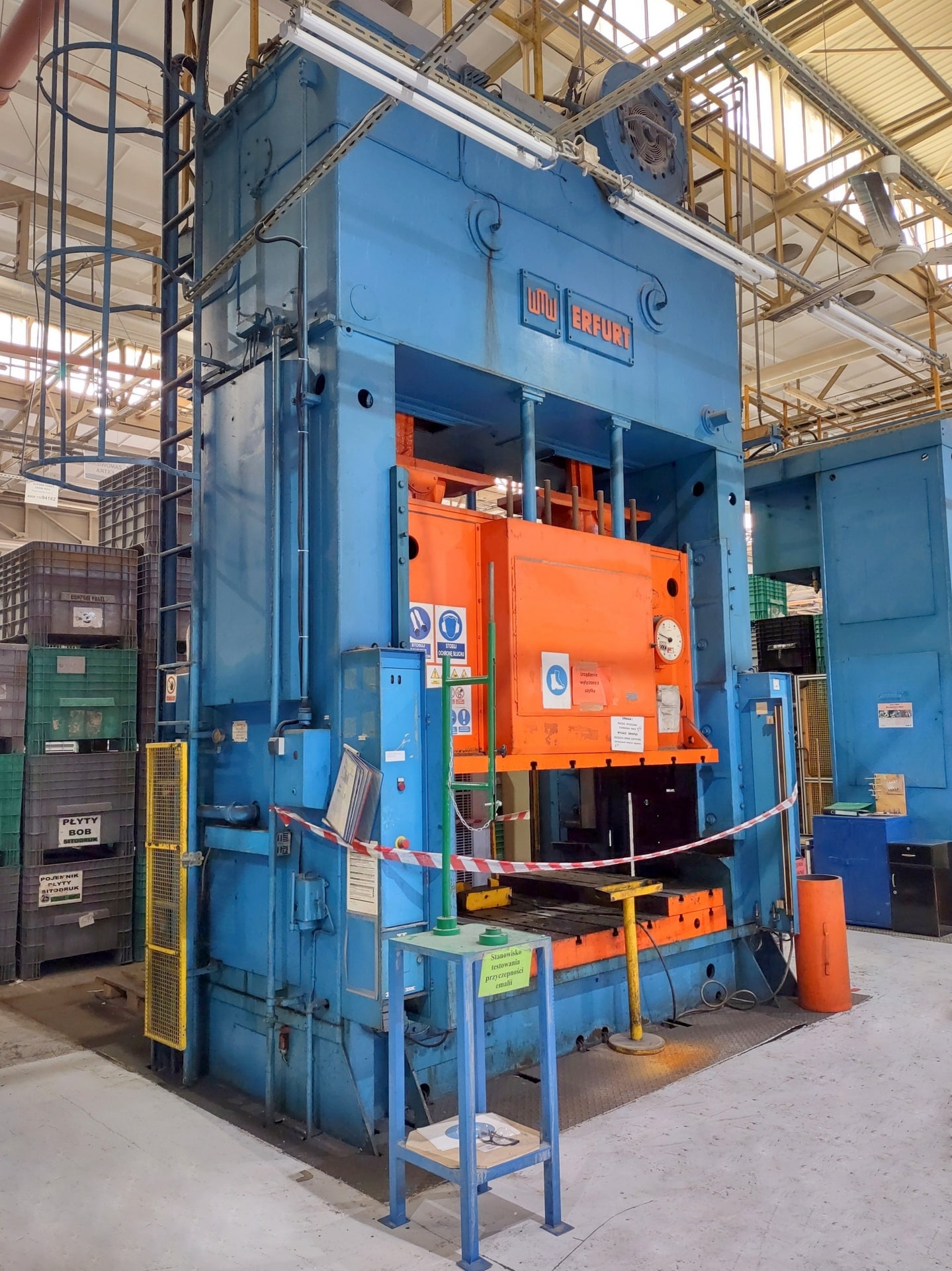 ERFURT PKZZ 315 kétállványos présgép, amelyet 1984-ben gyártottak Németországban, többek között fémlemezek és szalagok vágására, megmunkálására, hajlítására és lyukasztására szolgál. Az olyan jellemzők, mint a széleskörű munkadarab-megmunkálás képessége, a nagyméretű munkaasztal és a 315 tonnás működtető csúszka teszik a kurblis prést ideális eszközzé olyan dolgok tömeggyártásához, mint például mosógépalkatrészek, mezőgazdasági gépek vagy más járműtípusok.