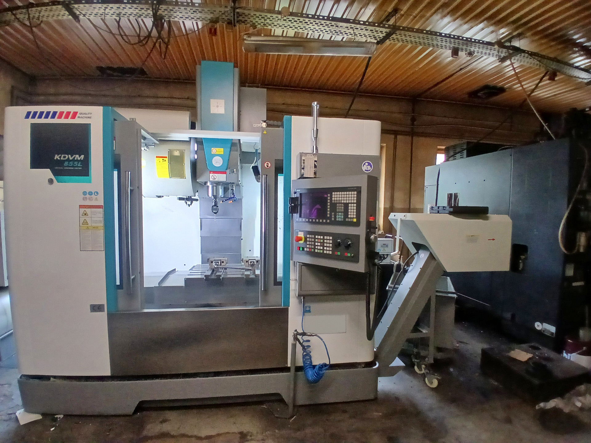 A KDVM855L CNC megmunkálóközpont neves márkák széleskörű felszerelésével kínáljuk. Többek között fejlett SIEMENS CNC-vezérléssel, 3D mérőszondával és forgácsszállítóval rendelkezik. A gép teljes tömege 5450 kg.