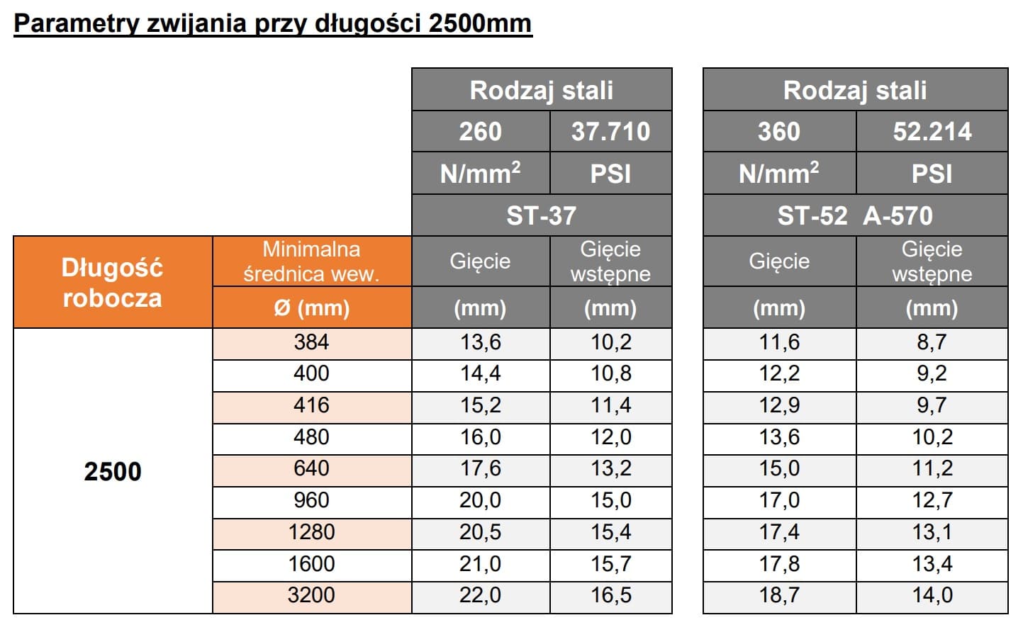 - munkahossz: 2550 mm