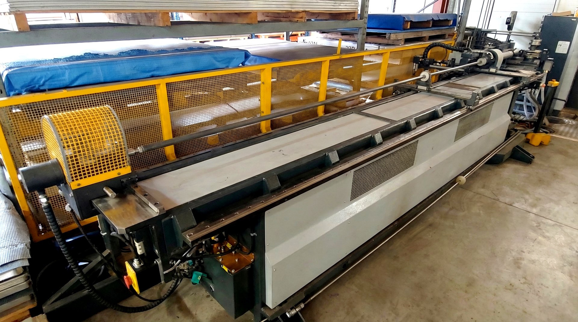 Macchina curvatubi MACRI ITALIA PROVAR 6-45 U-D è stata costruita nel 2015 in Italia da Macri Italia srl. La macchina, progettata per la curvatura di precisione di tubi e profili con un diametro massimo di 45 mm, è una risposta alle sfide quotidiane del business moderno. Il processo di lavorazione avviene per mezzo di una testa mobile con ingranaggi rinforzati, che consente la piegatura di raggi standard e variabili in 6 assi (X,Y,Z,B1,B2,A). Ogni asse, a sua volta, è azionato da servomotori brushless, che garantiscono il raggiungimento di un’elevata dinamica, unita a un’eccellente precisione di posizionamento. L’ampia dotazione della macchina comprende, ad esempio, il software MACRI all’avanguardia con molte funzioni utili e la possibilità di eseguire un test anticollisione con simulazione 3D. La curvatubi con anima PROVAR 6-45 U-D pesa 4000 kg.