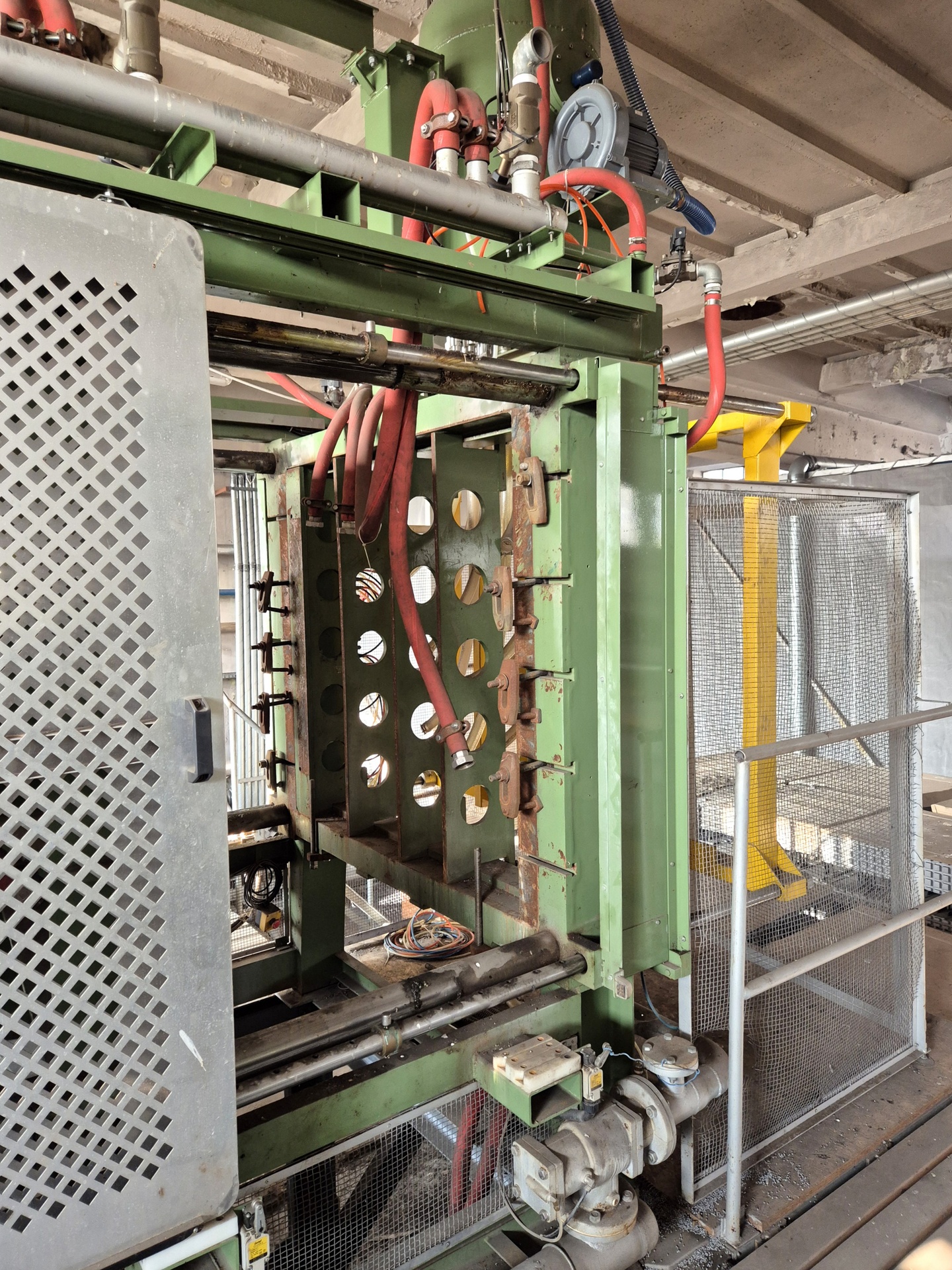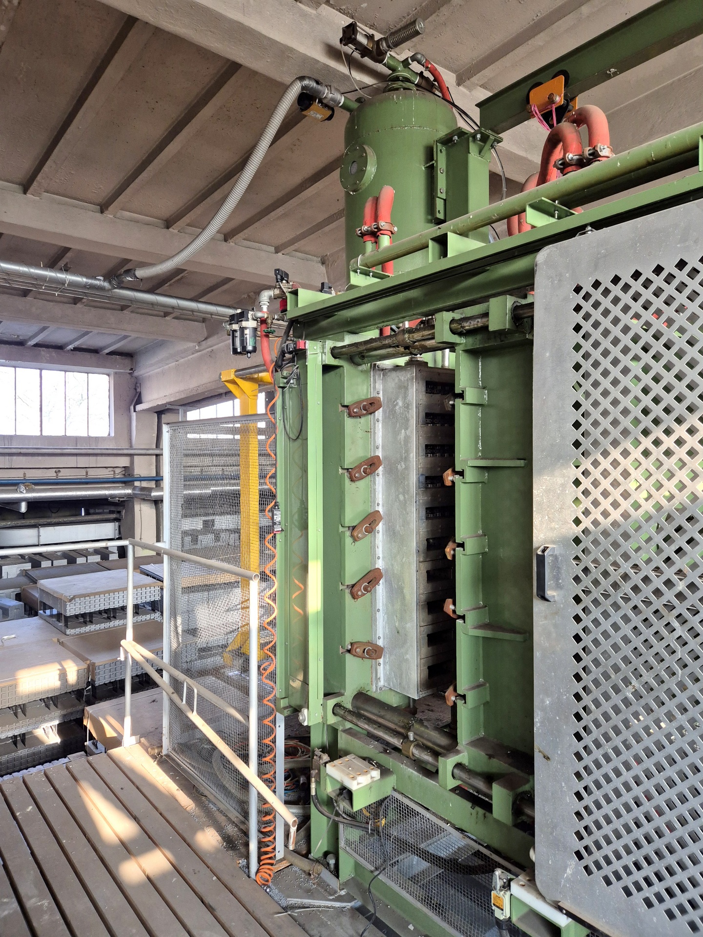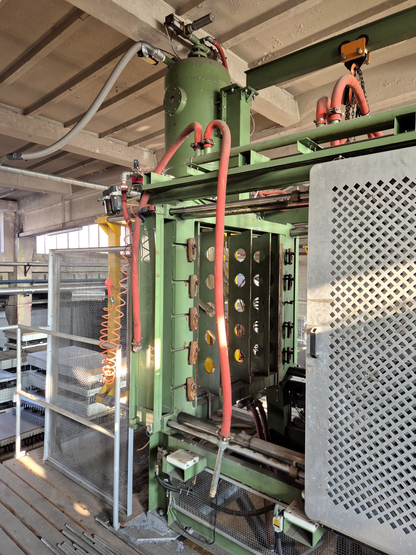 La macchina stampatrice di polistirene NAN-JHIEH NJ-150VM è attualmente configurata per la produzione di blocchi da costruzione in polistirene espanso (EPS). I cassero EPS sono utilizzati nell’industria edilizia come casseforme perse. Una volta costruita una parete, i blocchi cassero in polistirene vengono versati con il calcestruzzo, mentre il polistirolo funge automaticamente da isolante per l’edificio. Abbiamo cinque di queste macchine in vendita. Il prezzo offerto è per una sola unità. Una piattaforma su cui si trovano le macchine è disponibile per l’acquisto al prezzo di 12 500 € netti.