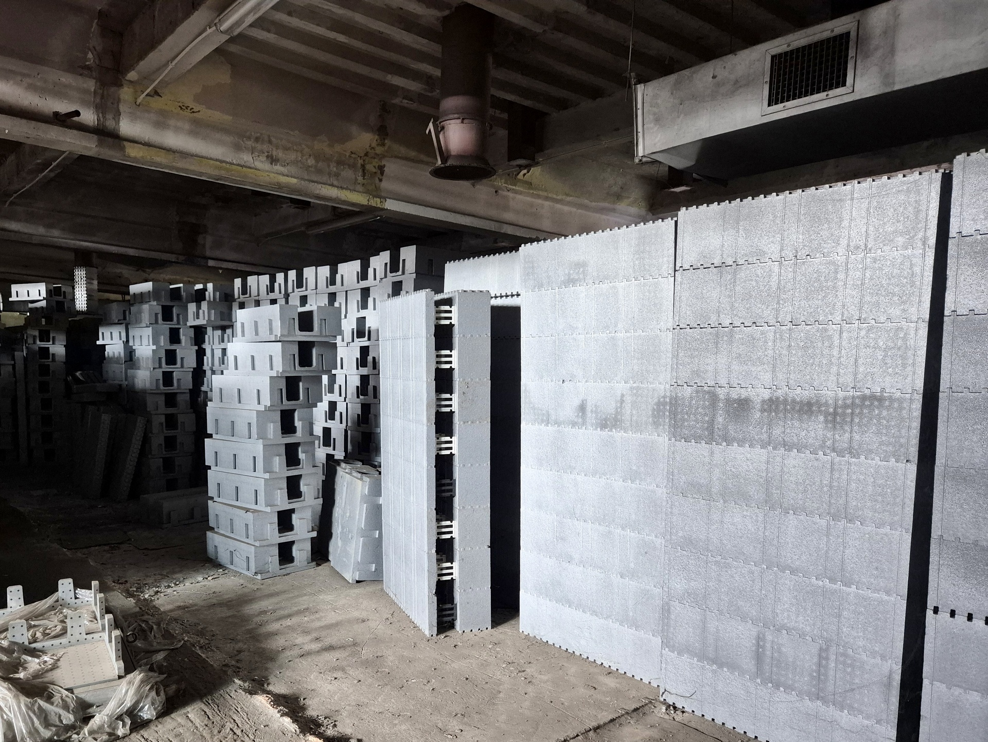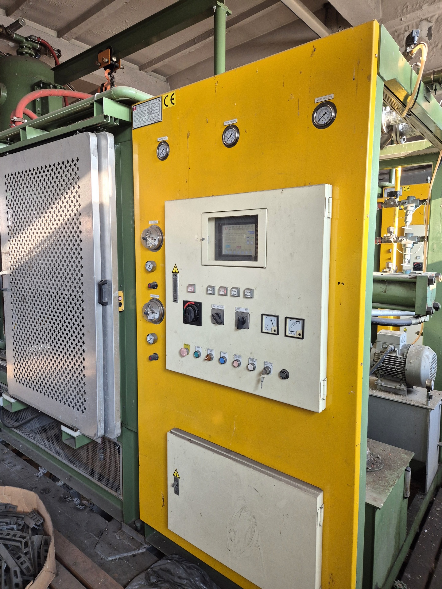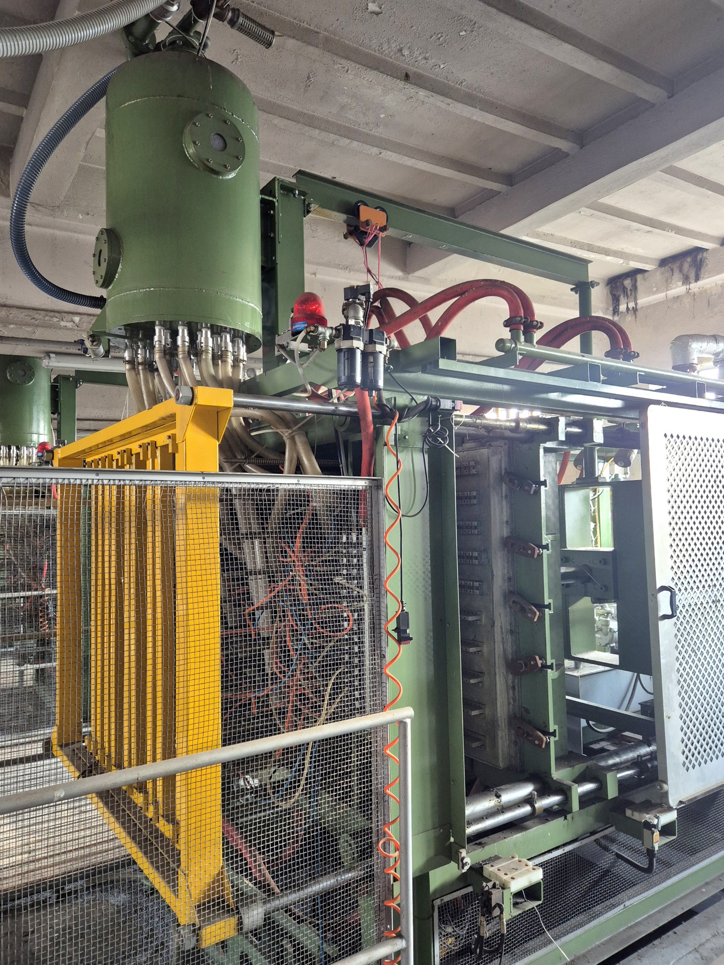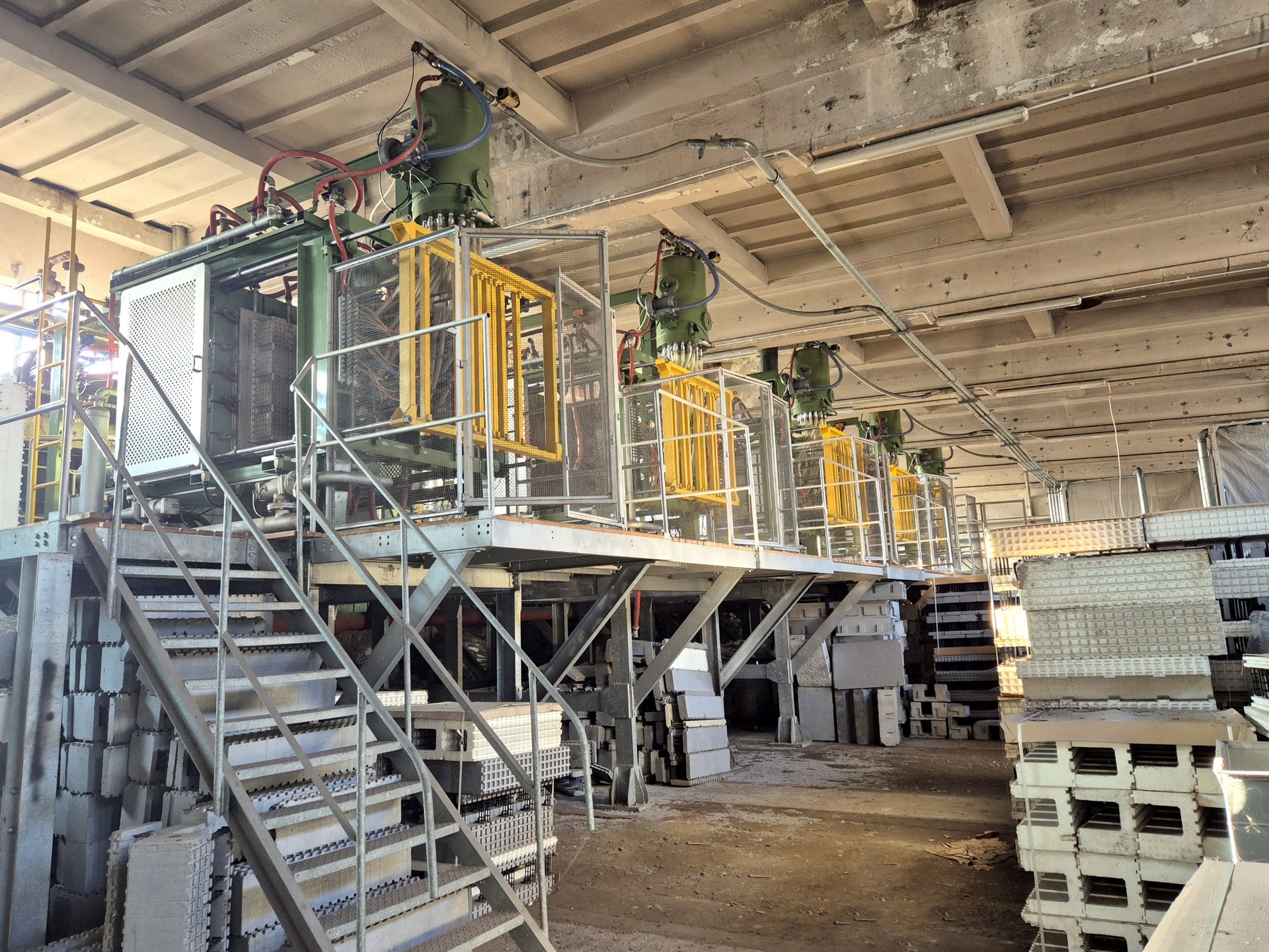 La macchina stampatrice di polistirene NAN-JHIEH NJ-150VM è attualmente configurata per la produzione di blocchi da costruzione in polistirene espanso (EPS). I cassero EPS sono utilizzati nell’industria edilizia come casseforme perse. Una volta costruita una parete, i blocchi cassero in polistirene vengono versati con il calcestruzzo, mentre il polistirolo funge automaticamente da isolante per l’edificio. Abbiamo cinque di queste macchine in vendita. Il prezzo offerto è per una sola unità. Una piattaforma su cui si trovano le macchine è disponibile per l’acquisto al prezzo di 12 500 € netti.