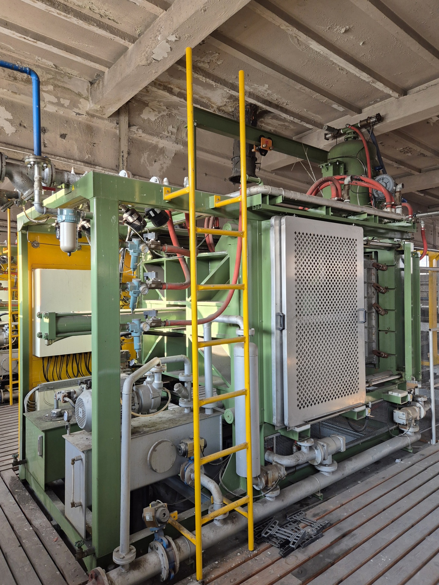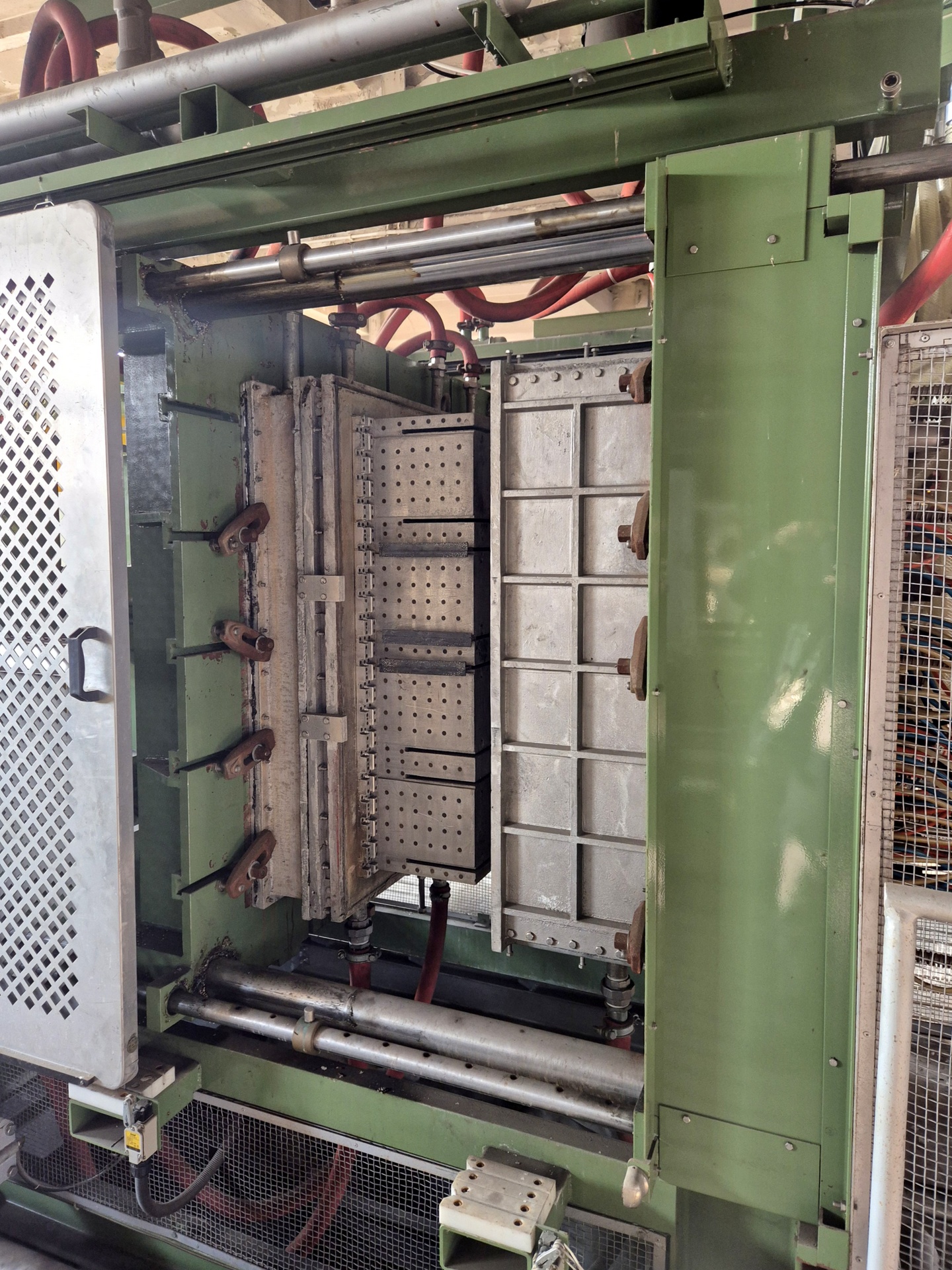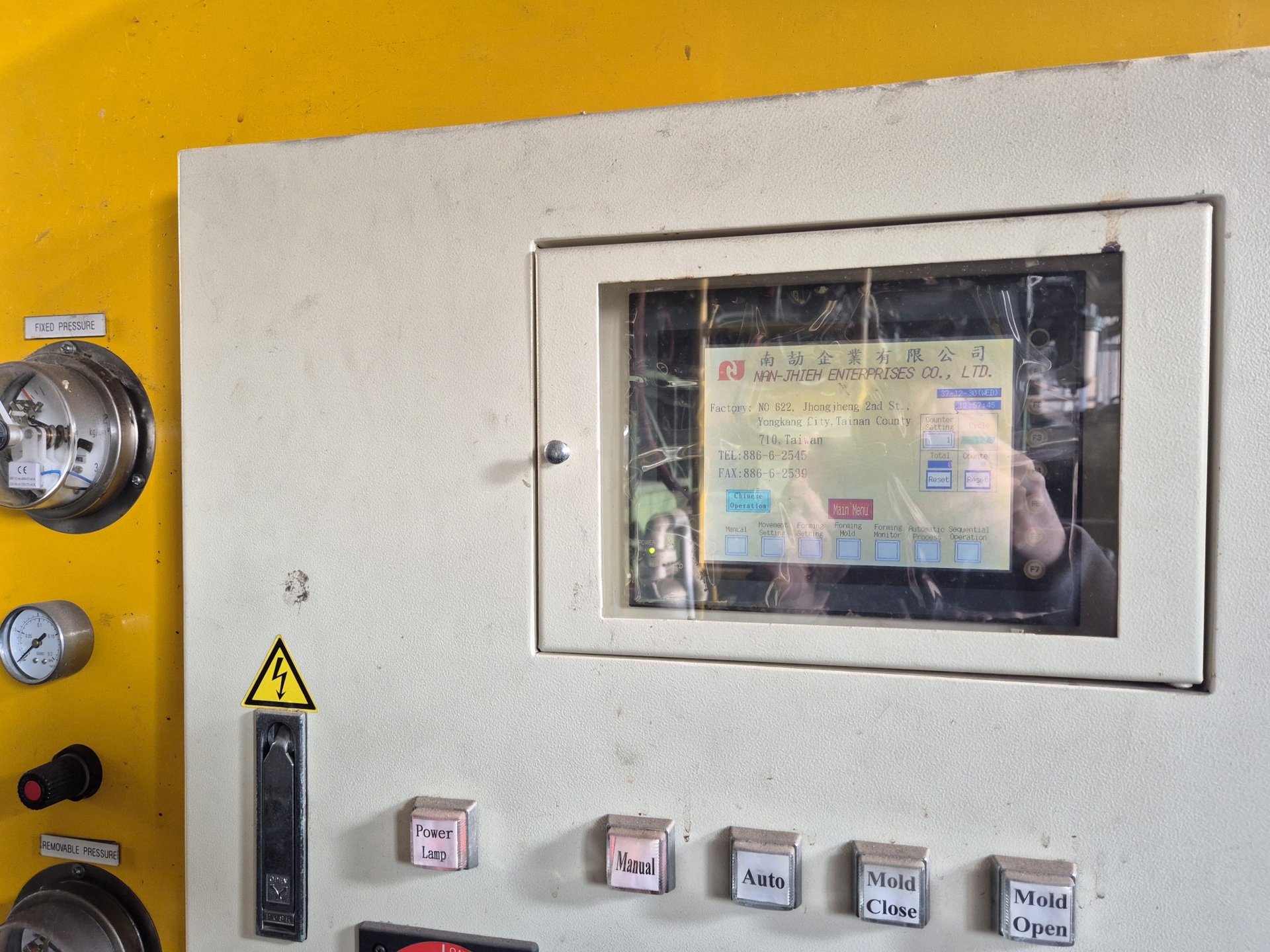Macchina per lo stampaggio di polistirolo EPS/EPE NAN-JHIEH NJ-150VM è stata costruita nel 2008 a Taiwan da NAN-JHIEH ENTERPRISES CO. LTD. La macchina è progettata per la produzione efficiente di vari tipi di parti in polistirolo, come cassettoni, stucchi, inserti per imballaggi e contenitori per alimenti (lunchbox, thermobox, menubox ecc.). Il polistirolo viene lavorato per mezzo di speciali stampi che conferiscono al componente la forma desiderata. Gli stampi sono intercambiabili e la macchina può essere adattata a diversi profili di produzione. Una forza di pressatura fino a 35 tonnellate, unita a una struttura estremamente rigida, garantisce il raggiungimento di un’elevata ripetibilità e qualità dei componenti prodotti.