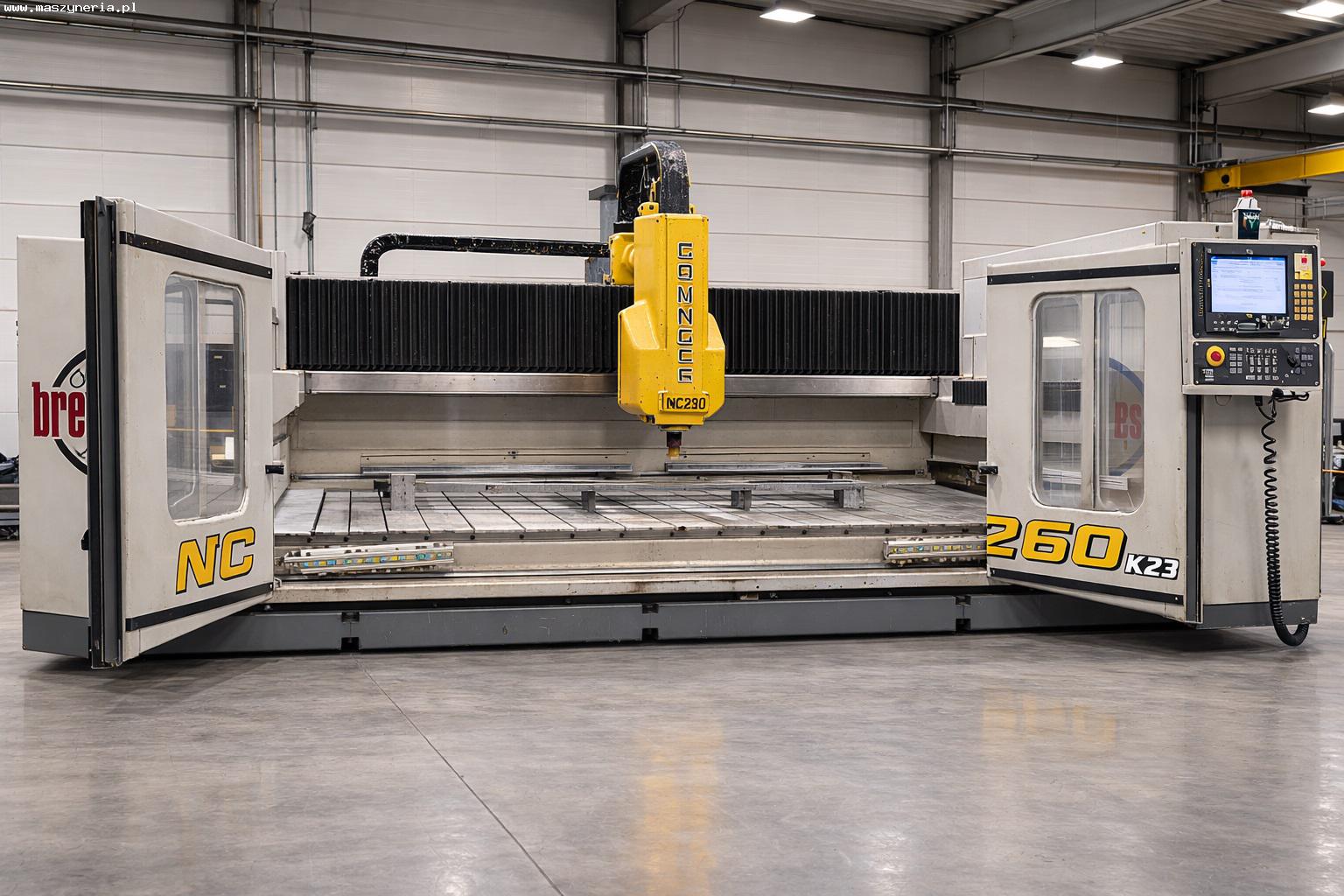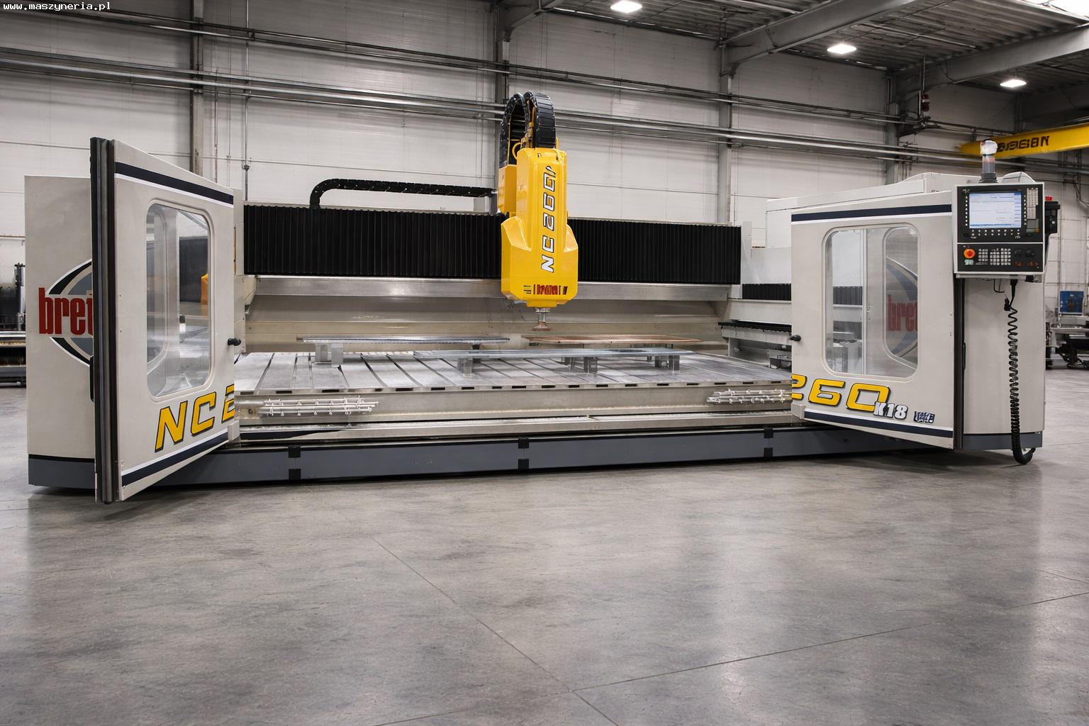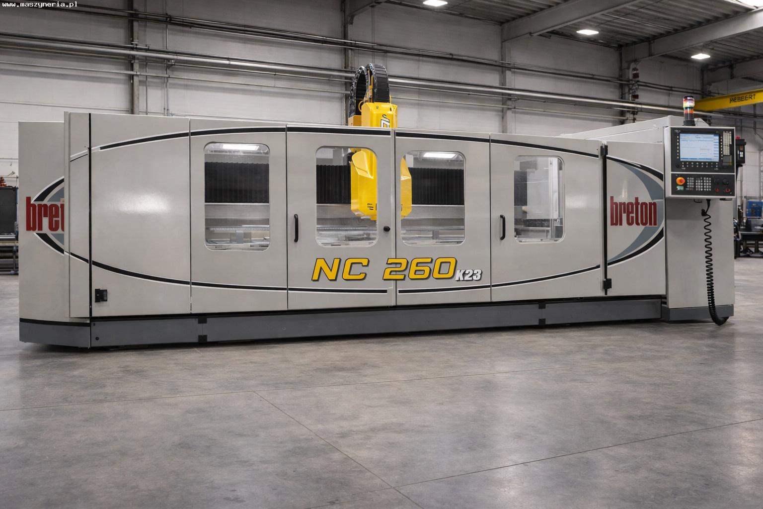 Centrum obróbcze do kamienia BRETON Contourbreton NC 260 K23 zbudowane zostało w 2010 roku we Włoszech przez Breton S.p.A. Maszyna znajduje zastosowanie w wydajnej obróbce płyt i bloków z kamienia naturalnego o maksymalnej wadze 4000 kg. Umożliwia ona realizację szeregu zaawansowanych operacji, t.j. frezowanie, profilowanie, fazowanie oraz wiercenie otworów. Wszystkie te procesy obróbcze wykonywane są w pełni automatycznie, z zachowaniem wysokiej powtarzalności i jakości produkowanych elementów. Niezawodne wrzeciono o maksymalnej prędkości obrotowej rzędu 9000 obr/min porusza się w trzech osiach sterowanych numerycznie. Pozwala to na precyzyjne pozycjonowanie narzędzia względem detalu podczas przeprowadzanej obróbki. Wszystkie osie napędzane przez wydajne silniki osiągają wysoką prędkość i dynamikę posuwu, co z kolei przekłada się na zwiększenie produktywności produkcji. Wszystko to sprawia, że oferowane centrum obróbcze CNC do marmuru i granitu Contourbreton NC 260 K23 to doskonały wybór do produkcji blatów kuchennych, schodów, parapetów i innych elementów wykonanych z marmuru i granitu. Całkowita waga maszyny wynosi 8000 kg.