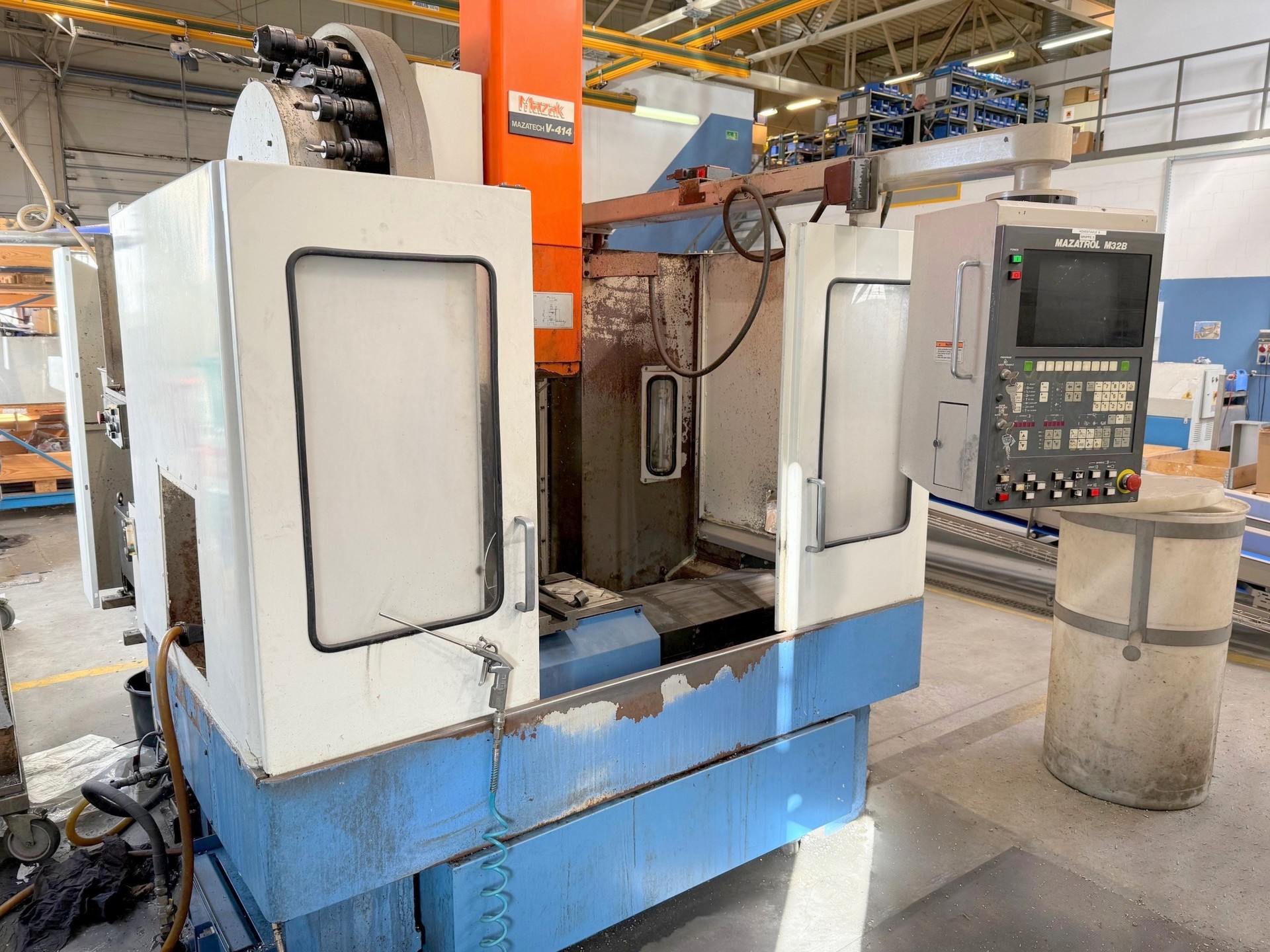 Centrum obróbcze pionowe CNC MAZAK MTV 414 zbudowane zostało w 1992 roku w Wielkiej Brytanii przez YAMAZAKI MACHINERY UK LTD. Oferowana maszyna to doskonały wybór do obróbki detali o maksymalnej wadze 500 kg. Dzięki niezawodnym komponentom i niezwykle sztywnej konstrukcji, MAZAK MTV 414 gwarantuje osiągnięcie najlepszych rezultatów obróbki przez cały okres użytkowania. Proces obróbczy realizowany jest wewnątrz dużej przestrzeni roboczej ze stołem roboczym o długości 900 mm i szerokości 410 mm, wrzecionem oraz pojemnym magazynem narzędzi. Wrzeciono napędzane przez silnik o dużej mocy obraca się z maksymalną prędkością 7000 obr/min i pracuje w trzech osiach X,Y,Z o posuwach wynoszących kolejno 560 mm, 410 mm oraz 460 mm. Wszystkie narzędzia skrawające przechowywane są w 24-pozycyjnym magazynie narzędzi z systemem automatycznej wymiany narzędzi (ATC). Całość uzupełnia inteligentny sterownik CNC MAZATROL M32B z intuicyjnym interfejsem i dostępem do wielu zaawansowanych funkcji. Pozwala on na m.in. zmianę prędkości obrotowej wrzeciona czy precyzyjne programowanie parametrów obróbki. Centrum obróbcze CNC MAZAK MAZATECH V-414 waży 5250 kg.