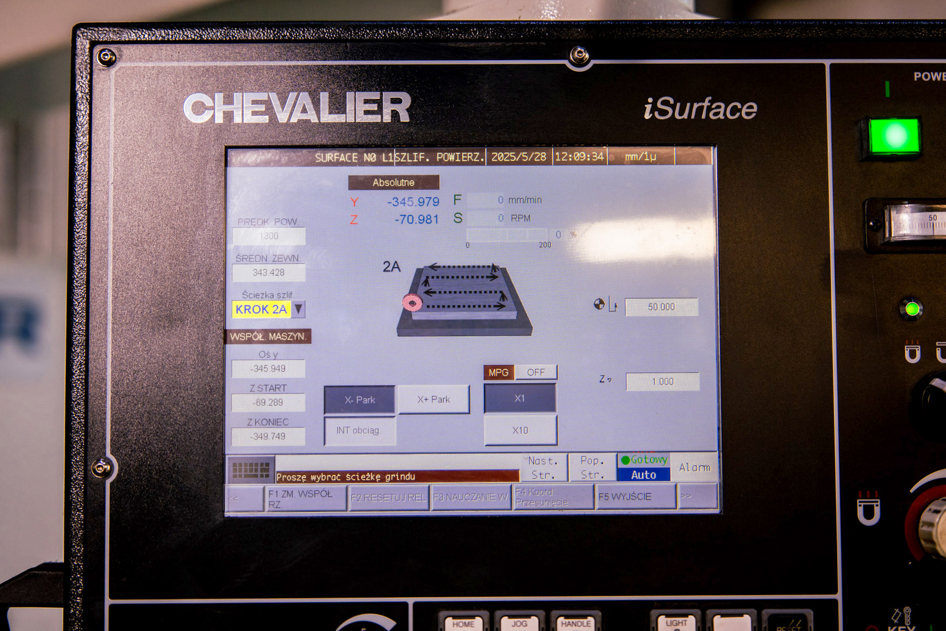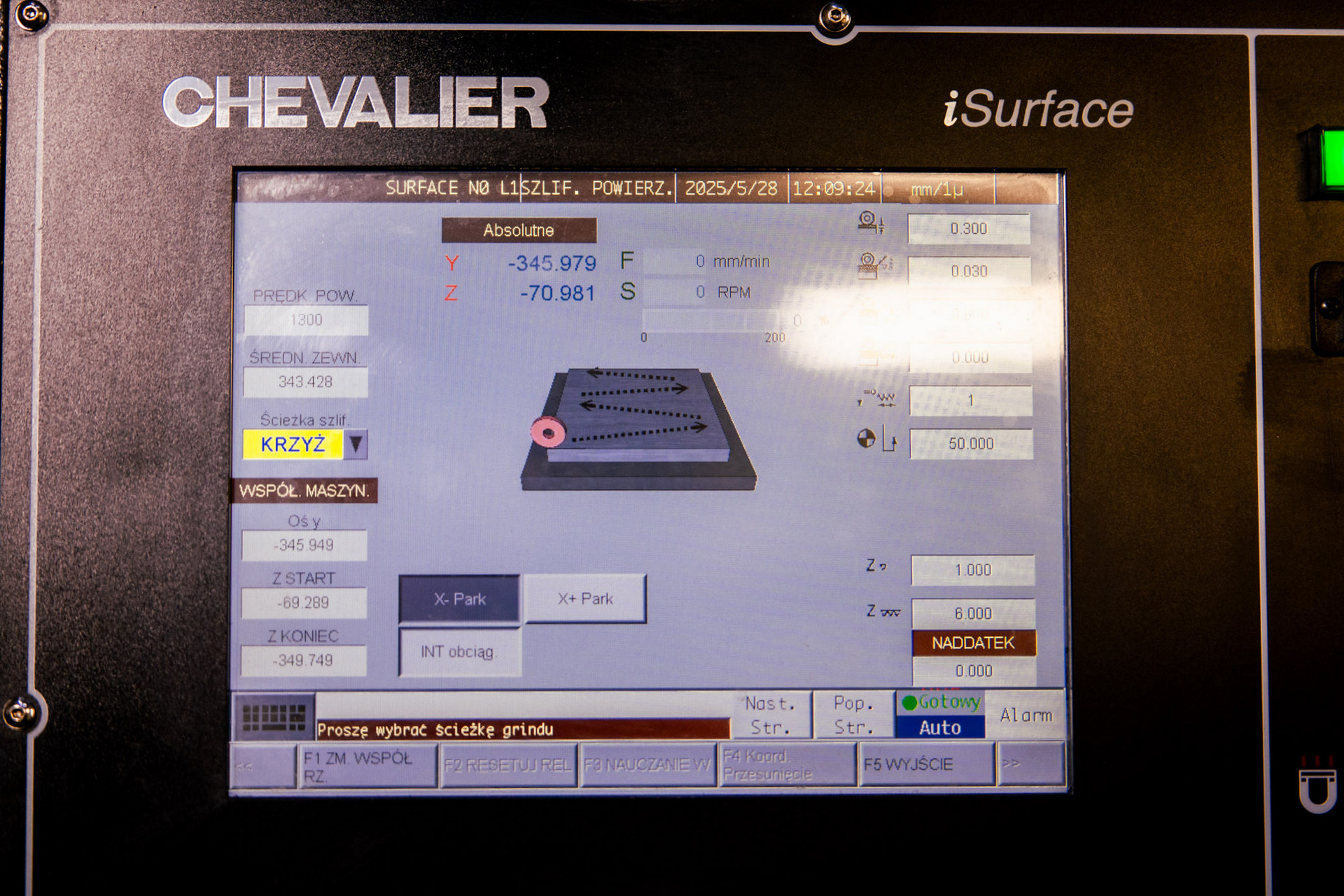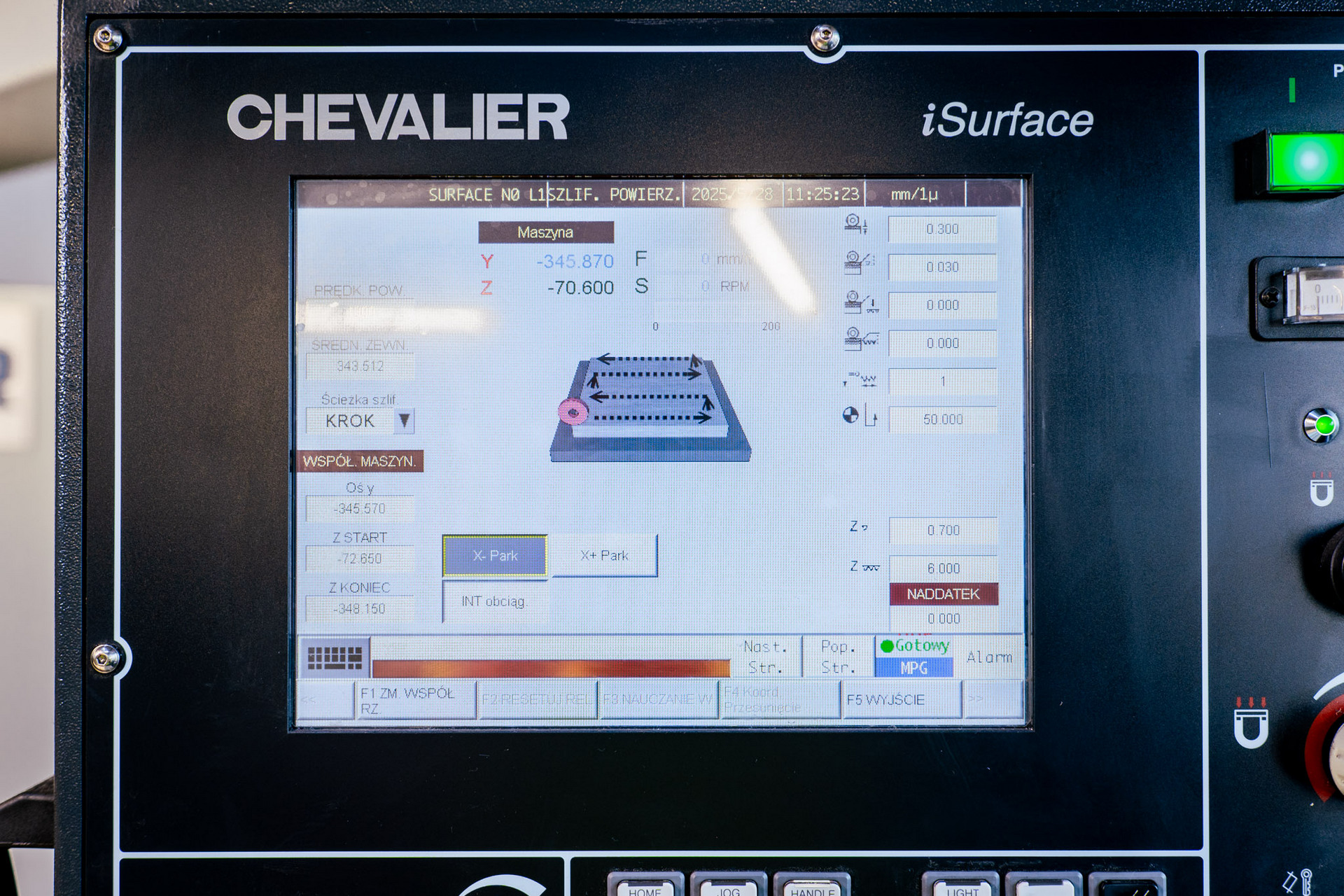 - prędkość posuwu pionowego ściernicy (oś Y): 0-675 mm/min