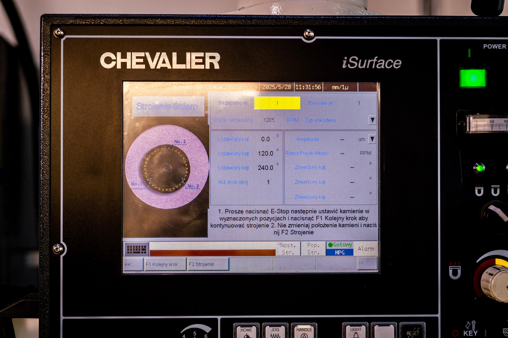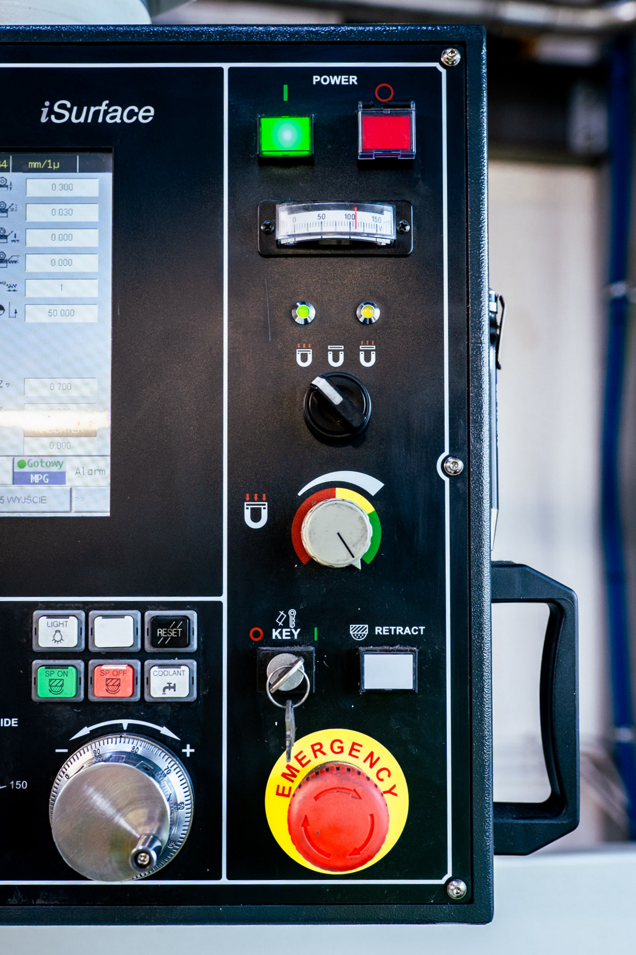 Codzienną obsługę maszyny ułatwia zaawansowany sterownik NC iSurface. Ta wysokiej jakości jednostka przemysłowa, oparta na komputerze PC, posiada szereg przydatnych funkcji, t.j. napęd o zmiennej częstotliwości, który automatycznie dostosowuje prędkość liniową ściernicy. Wyważenie ściernicy monitorowane jest z kolei przez wbudowany wskaźnik, który w razie potrzeby informuje operatora o konieczności ponowienia tej czynności.