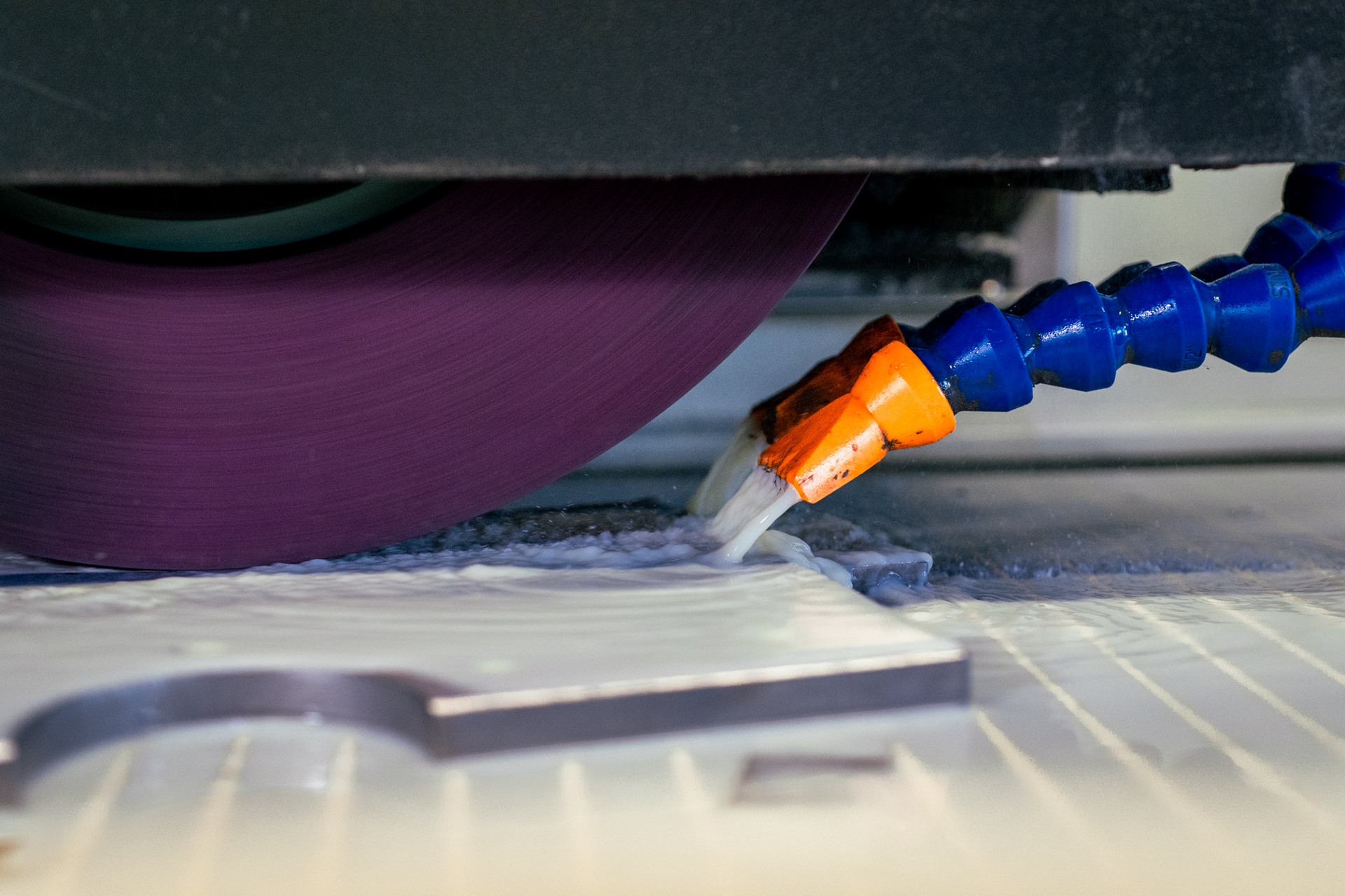Podczas obciągania ściernicy, stół roboczy automatycznie ustawia się w miejscu w którym znajdują się narzędzia diamentowe i kompensuje zgodnie z ustawieniami operatora. Wyważanie z kolei redukuje wibracje ściernicy i całkowicie eliminuje efekt falowania powierzchni detalu. Oba te rozwiązania, w połączeniu ze zmienną prędkością obrotową wrzeciona, zapewniają stałą prędkość powierzchni niezależnie od zmieniającej się średnicy ściernicy.