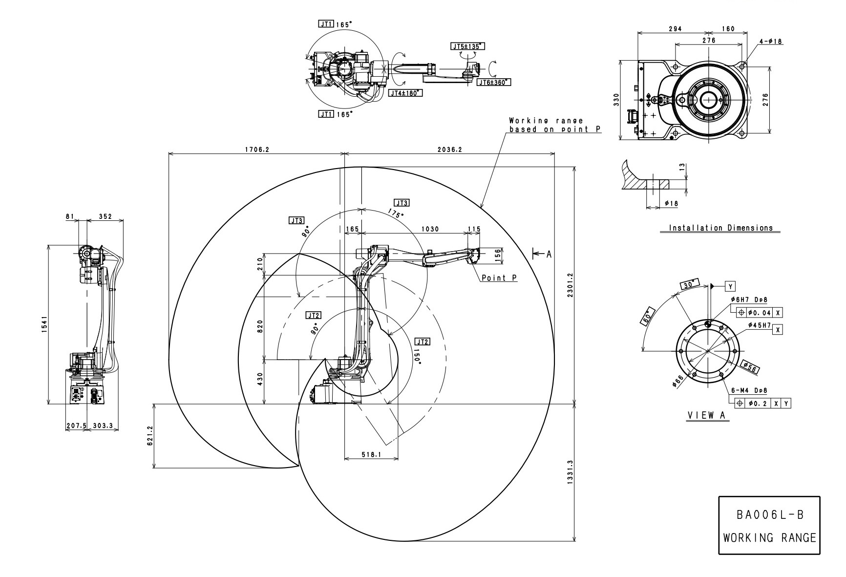 – oś JT1: ± 165°
