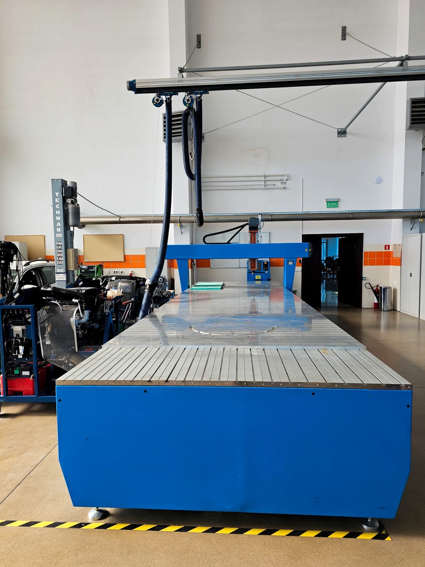 KIMLA BPF 2070 CNC router, 2010 yılında Polonya’da POLCOM Przemysław Kimla tarafından üretilmiştir. Makine ahşap, plastik ve alüminyum gibi malzemelerden yapılmış parçaların hassas bir şekilde işlenmesi için kullanılmaktadır. İşleme süreci, 7050 mm uzunluğa ve 2085 mm genişliğe sahip büyük bir çalışma masası üzerinde güvenilir, yüksek hızlı bir iş mili aracılığıyla gerçekleştirilmektedir. Öte yandan proses stabilitesi, en yoğun zorluklar sırasında bile titreşim ve salınımı etkili bir şekilde ortadan kaldıran son derece rijit bir tasarımla sağlanır. Tüm bunlar, kullanımı kolay PC-CAM yazılımına sahip endüstriyel bir CNC kontrolör ile tamamlanmaktadır. BPF 2070 CNC freze tezgahı 6000 kg ağırlığındadır.